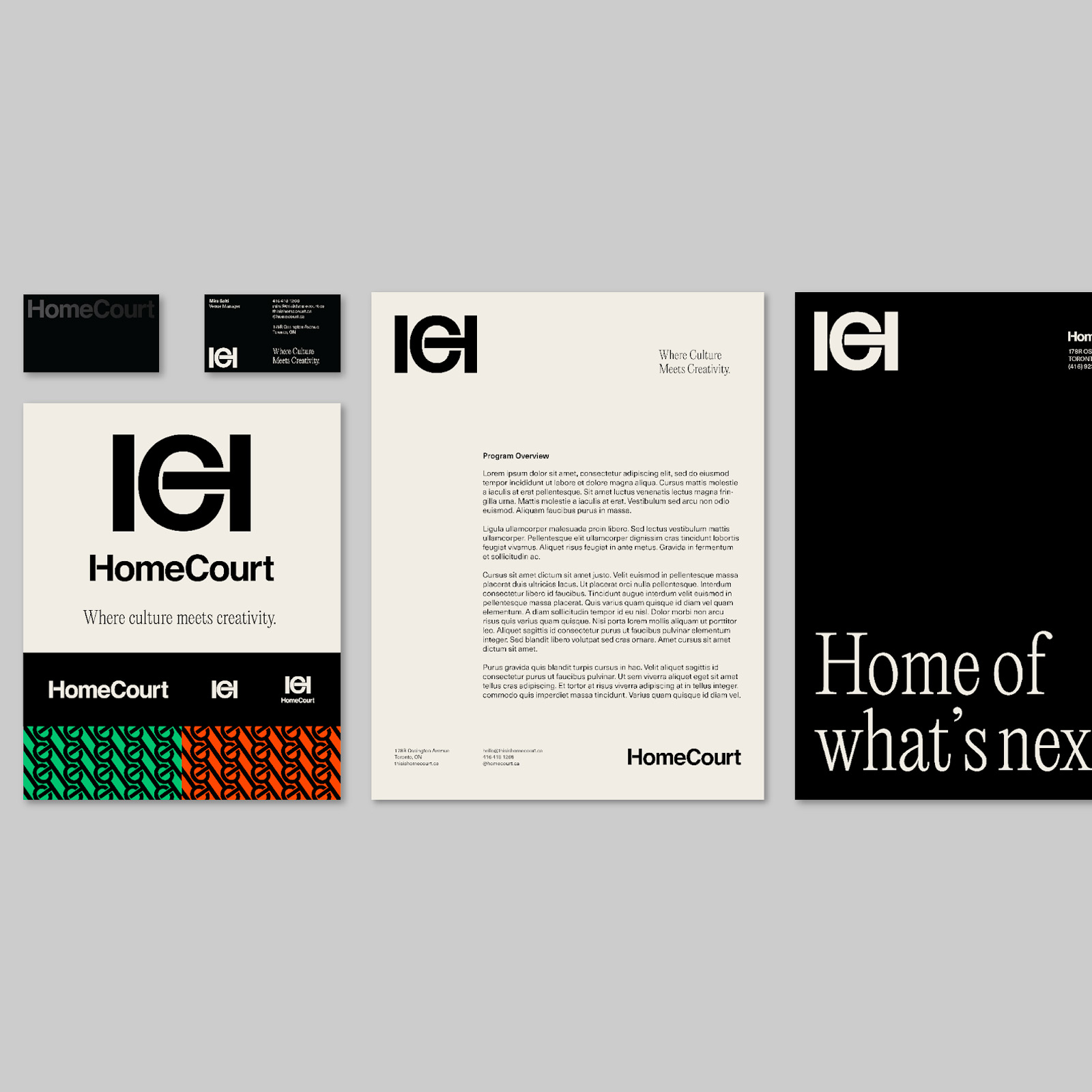 In a transformative branding and visual identity project, Mint Agency breathes life into Toronto's newest arts and culture hub, HomeCourt. Situated in the heart of downtown Toronto, HomeCourt offers a multi-functional space for discussions, workshops, photography, videography, events, and more, all with a signature design that reflects its creative nature.