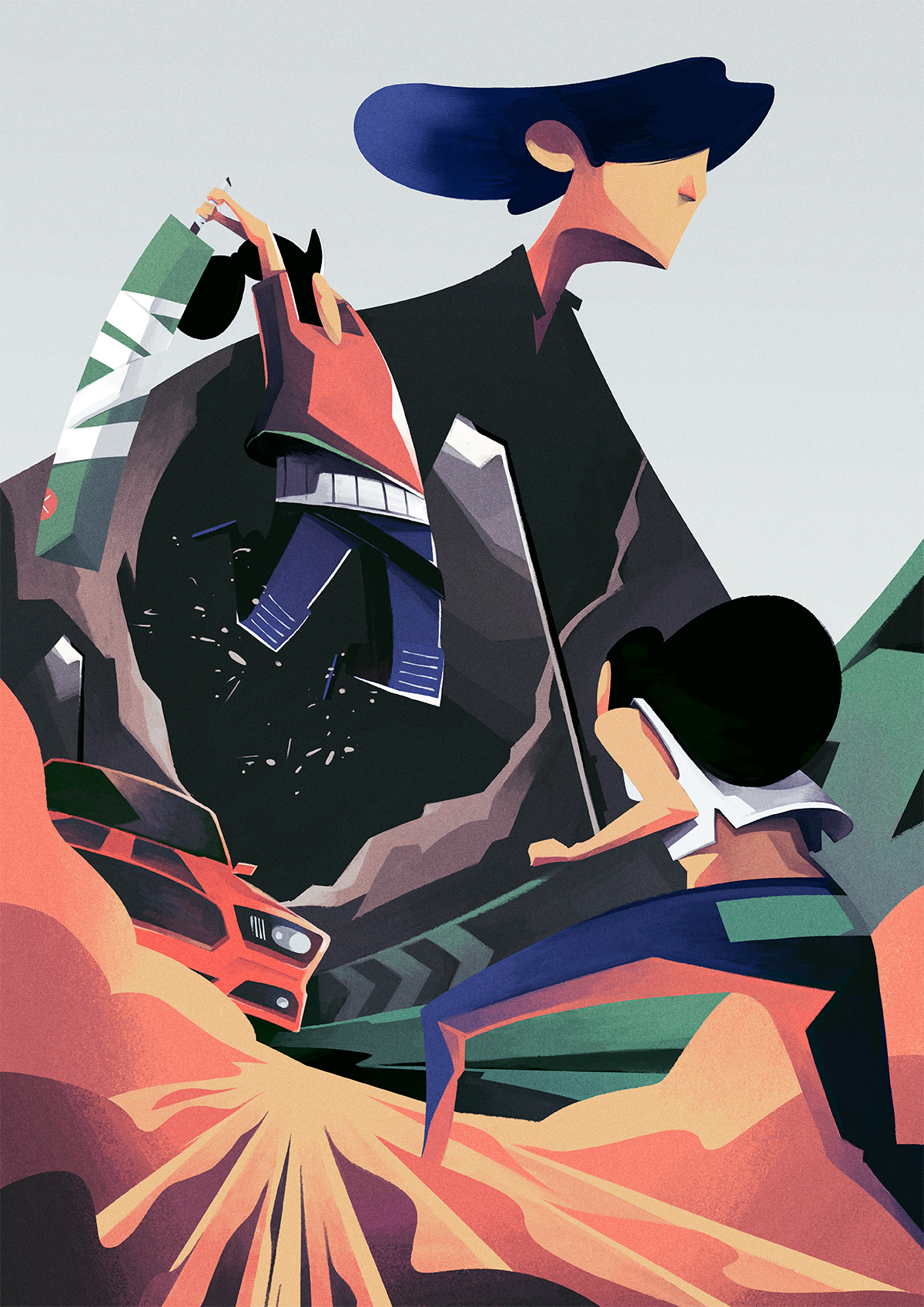 Thomas Rohlfs is an illustrator from Amsterdam, Netherlands with a very unique style. He shared a illustration post on his Behance profile showing a bit of his process from sketches to the final piece. The most amazing thing for me is the sense of movement added by a quite aggressive perspective. In addition to that, the color scheme and textures are top notch.