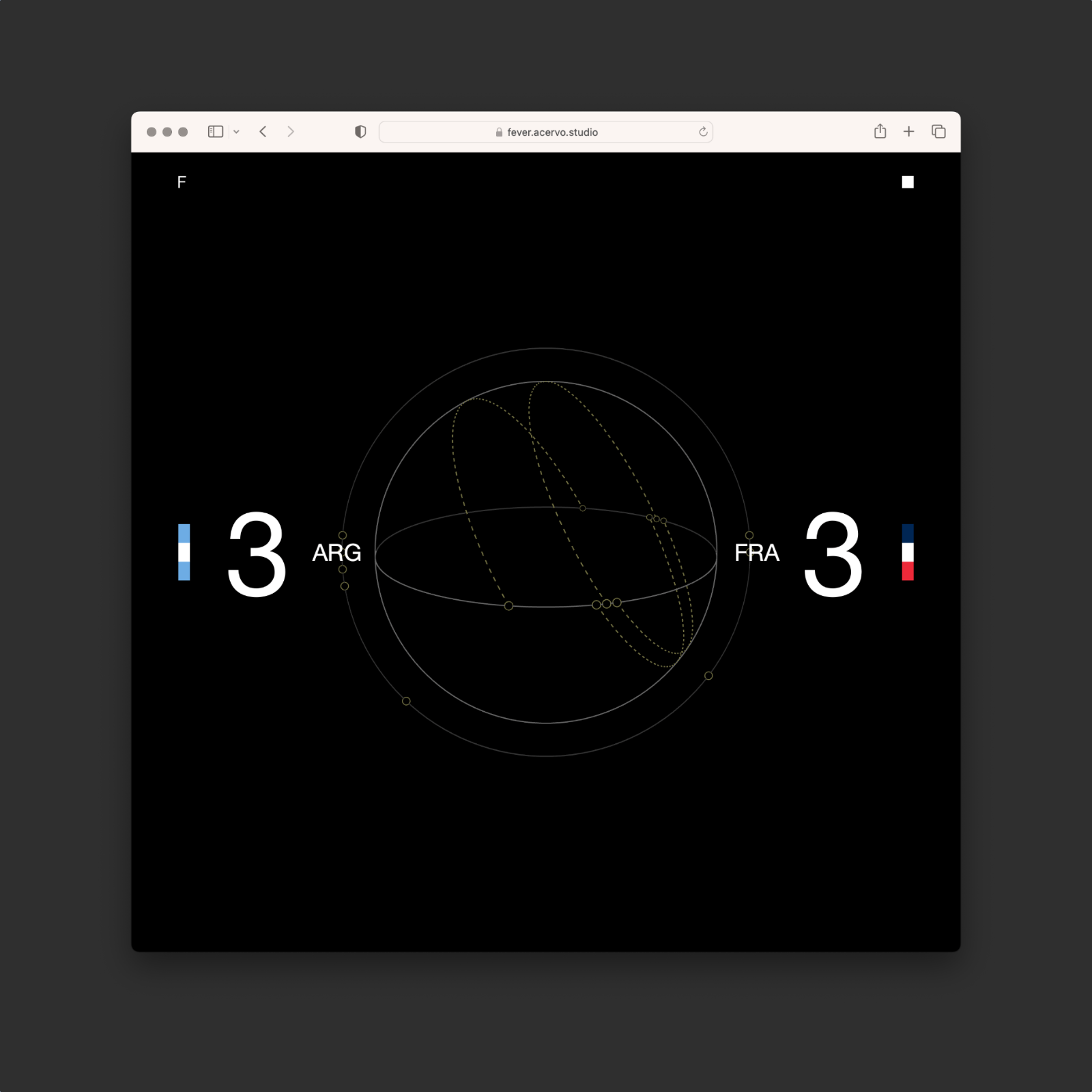 The project is manifested as a combination of different passions: football, coding, motion & graphic design. Offering a different viewing perspective on the most prestigious football tournament in the world.Design is minimal, and the story is told by using simple geometry and the team's recognizable flag colors, Match duration and timeline is represented by a sphere, displaying every goal in time as an arc in the globe.