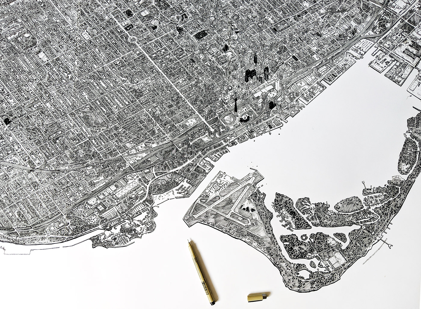 Thinking about Canada sometimes, especially remembering how big it was the country and its people obviously. When I stumbled across this hand-drawn illustration of the beautiful city of Toronto by Kathleen Fu, I just couldn't help to remember my home country. Kathleen is an illustrator, architectural/urban designer based in Toronto. I love this drawing and it's super detailed to its core. Her talented piece really showcases the density of the cityscape and I just couldn't imagine how long it took her to finish this drawing. Incredible work and kudos to Kathleen for sharing. It's definitely a beautiful feature on abdz.