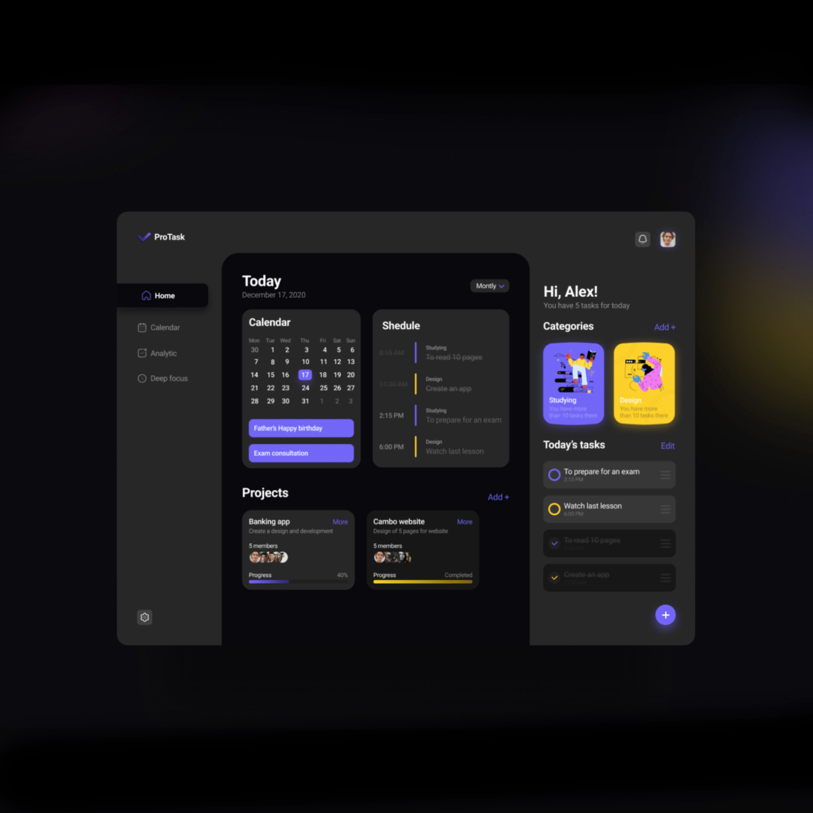 Dmytro Nedvyha is a designer from Ukraine witha beautiful portfolio of UX work. One of these projects is ProTask, an app concept for a task manager. As Dmytro describes, more and more people want to spend their days productively, and he was inspired by this idea to create such an application.