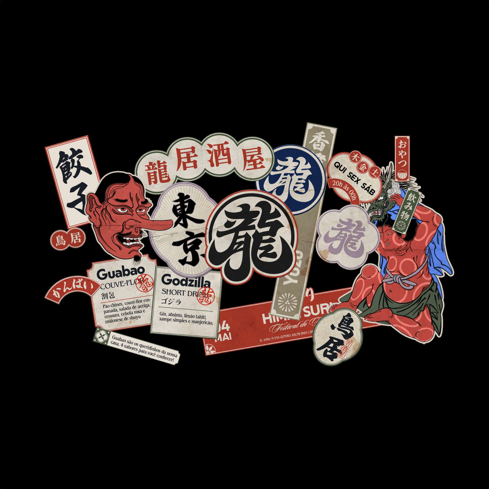 Visual identity, social media design, menu and promotional materials created by Monga Design for O Bar do Dragão, an izakaya* located in Balneário Camboriú, Brazil.
