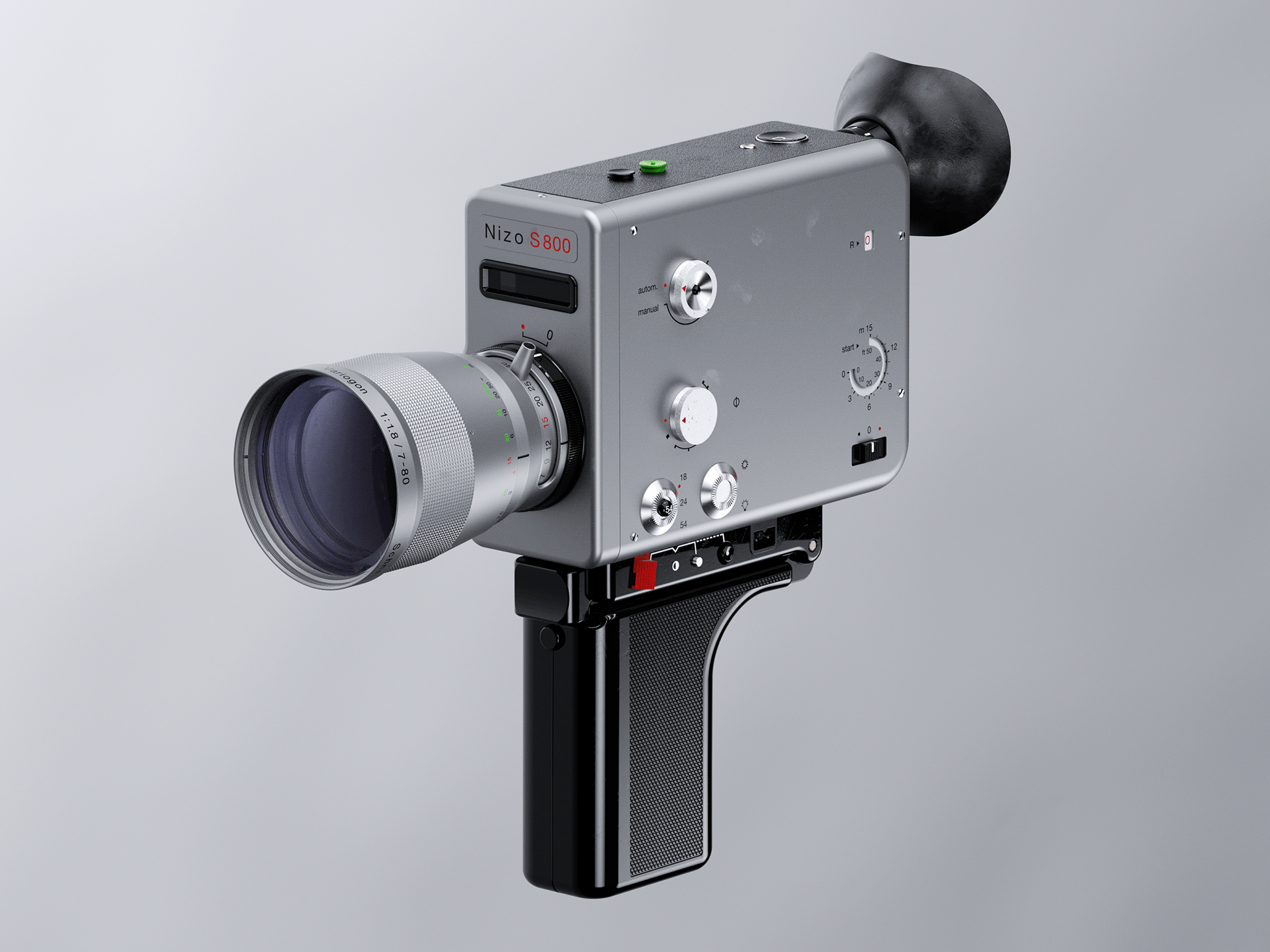 The iconic Nizo S 800 Braun Super 8 was made in Germany by Niezoldi & Krämer / Braun. This thing is a beautiful piece of history, one of the best super8 cameras ever built. This camera is gorgeous in terms of design, usability and how cool you used to look when filming. We are featuring the 3D creation by Jason Zigrino who built the Nizo S 800 right from scratch with Maxon Cinema 4D, ArionFX, Fusion 360 and Redshift3D. The result is magnificent and we had to find a slot to share this 3D achievement. Just take a look at the details, the dials, the font used and everything. Just wow!